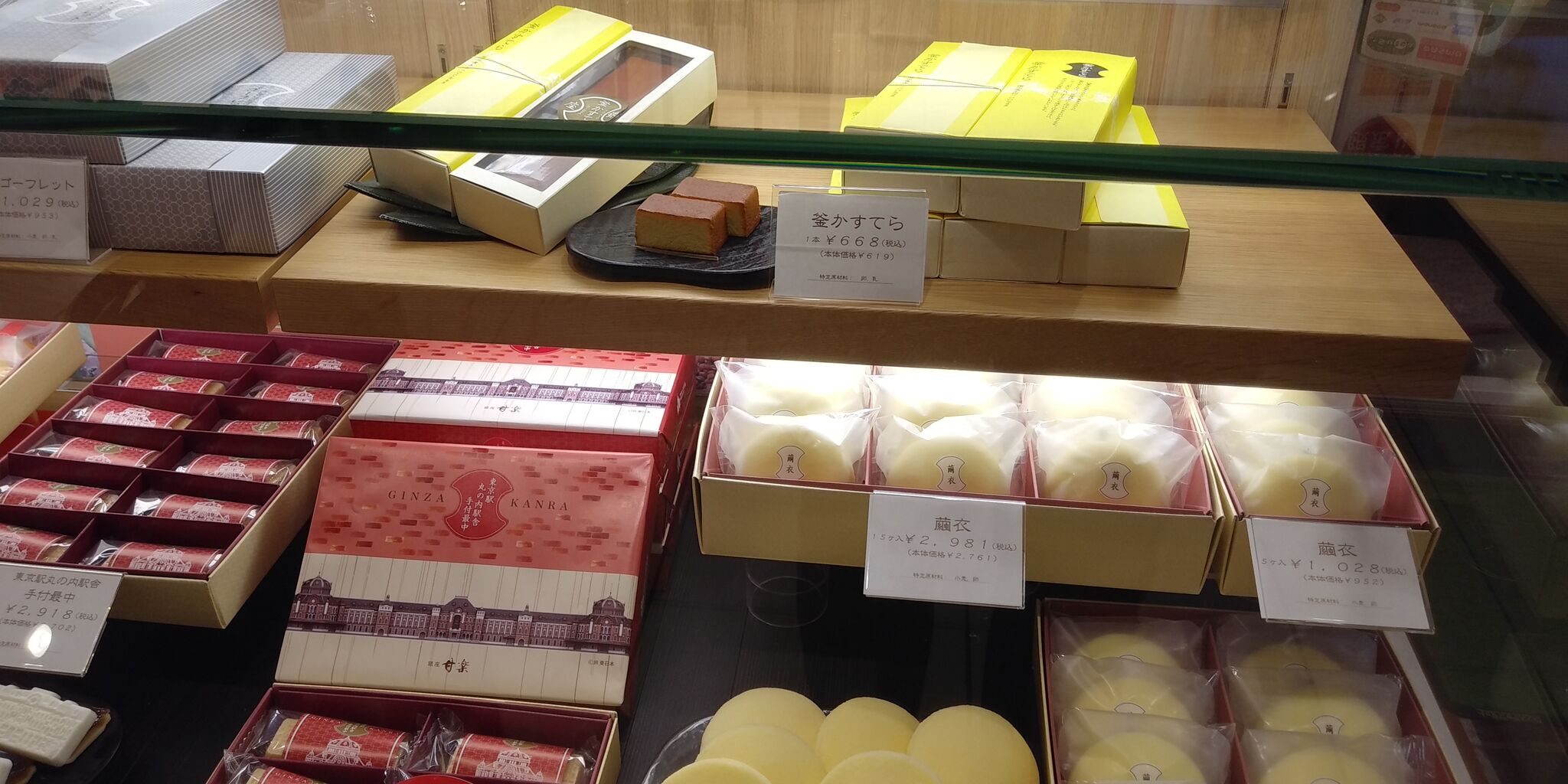 銀座甘楽のグランスタ東京店の、商品ラインナップ。