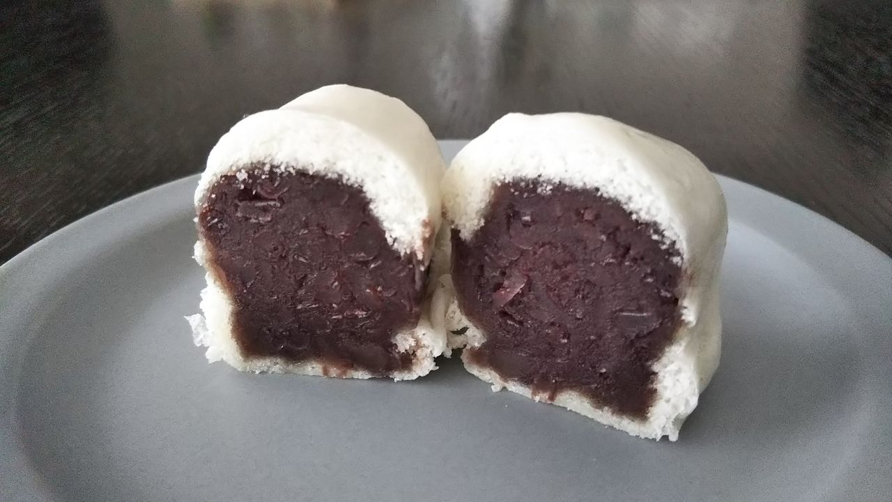 白い生地の隙間から、ところどころなかの餡がのぞいています。