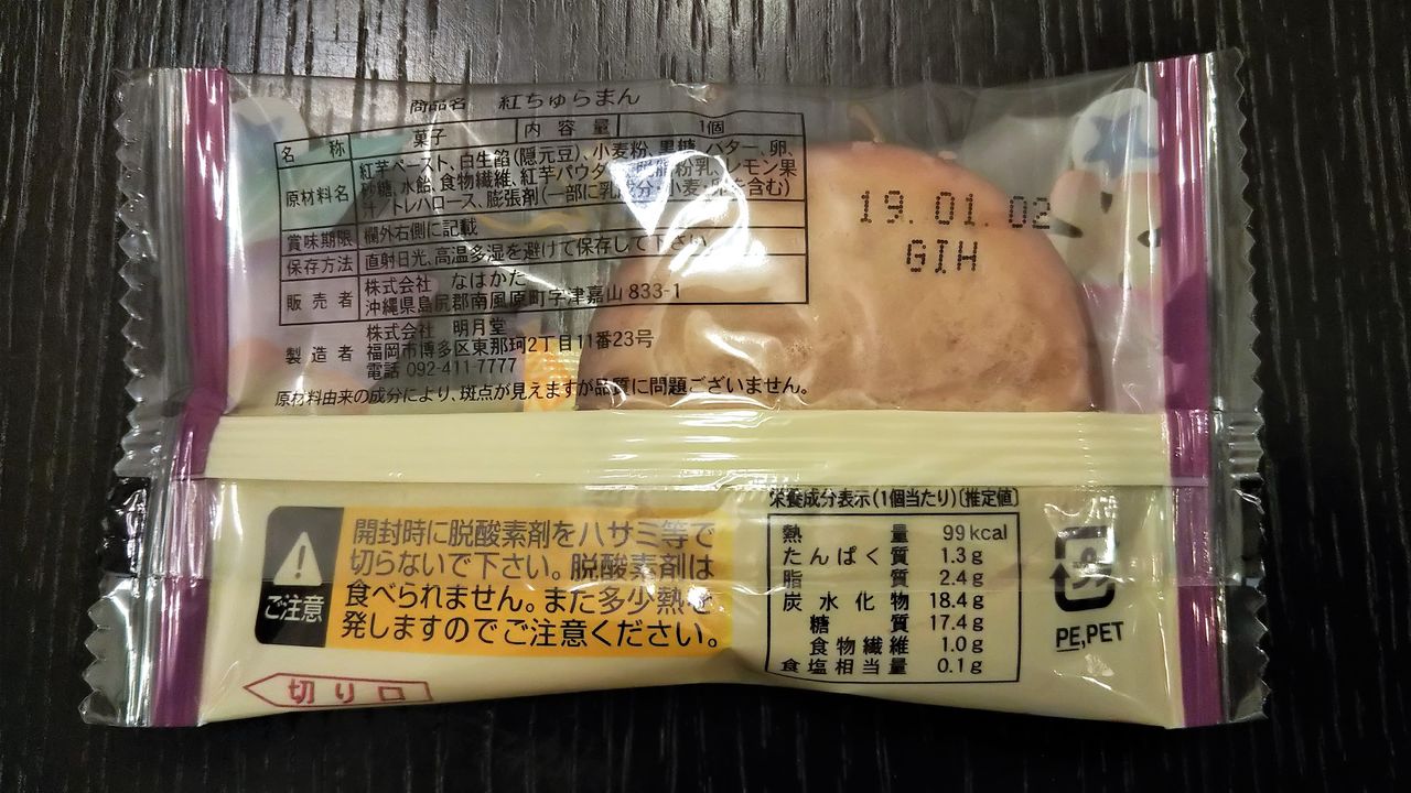 でも、裏を見ると、製造元は博多通りもんと同じ、『明月堂』の名前が。