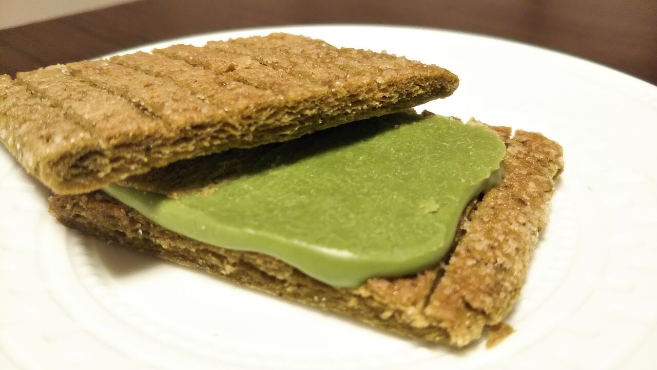 生地にも抹茶が練り込まれているようで、通常のシュガーバターサンドの木より、グリーンがかった香ばしい感じの色味です。