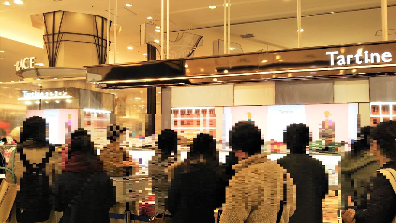 案内板に沿って進んでいくと、“地下一階①番出入口” にはタルティンの列に並ぶお客さんがたくさん。
