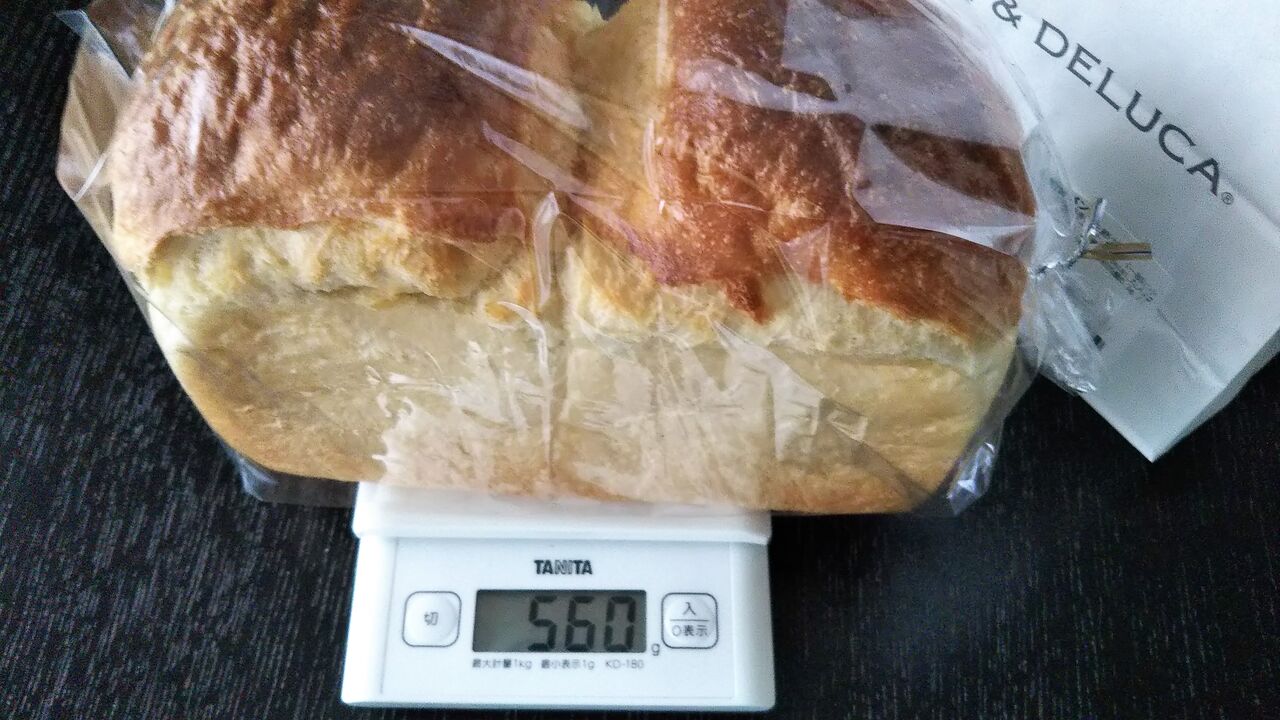 ふつうのスーパーなどで売られている食パン1袋が370~390g前後だったので、かなりの重さを感じます。