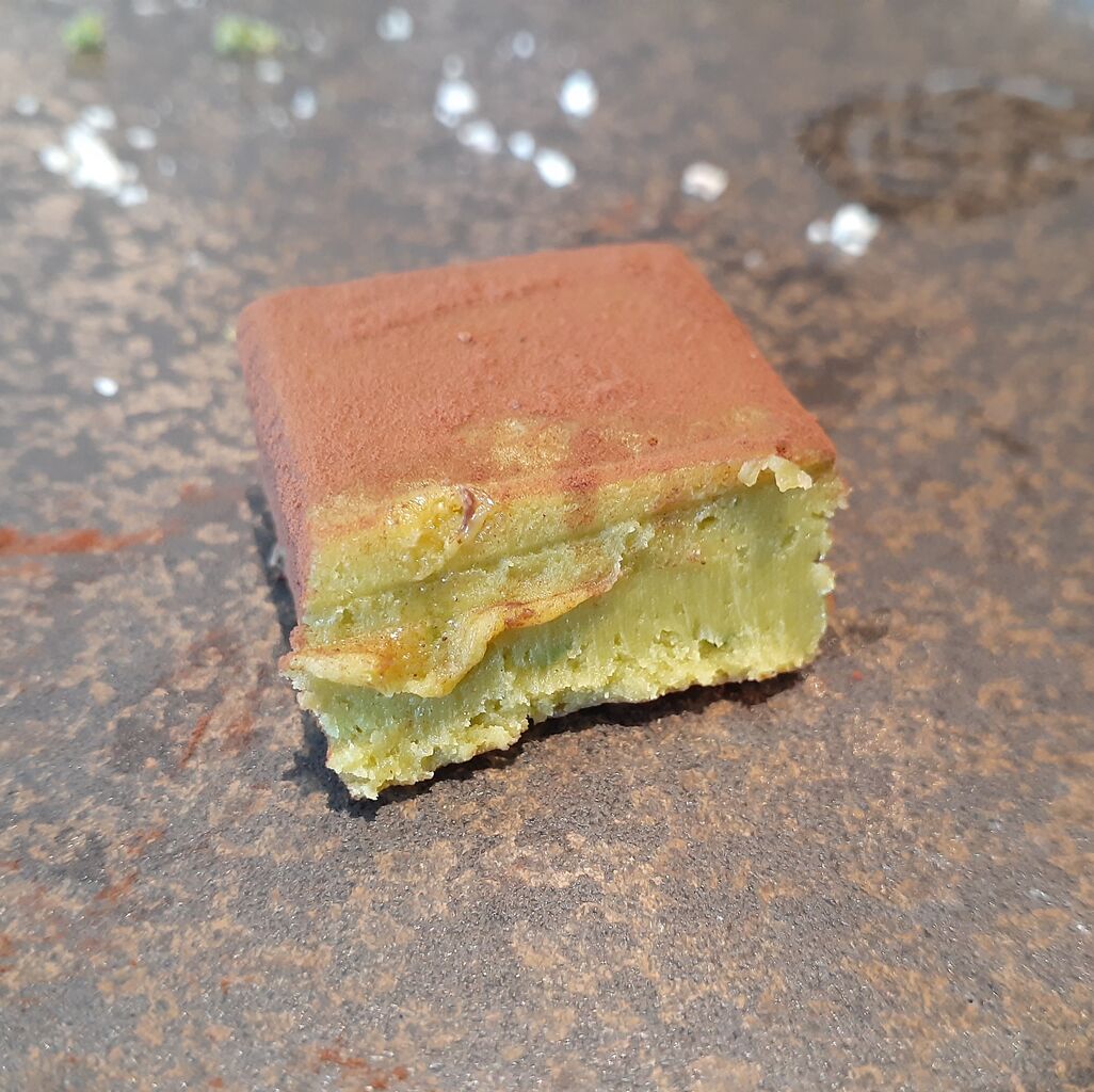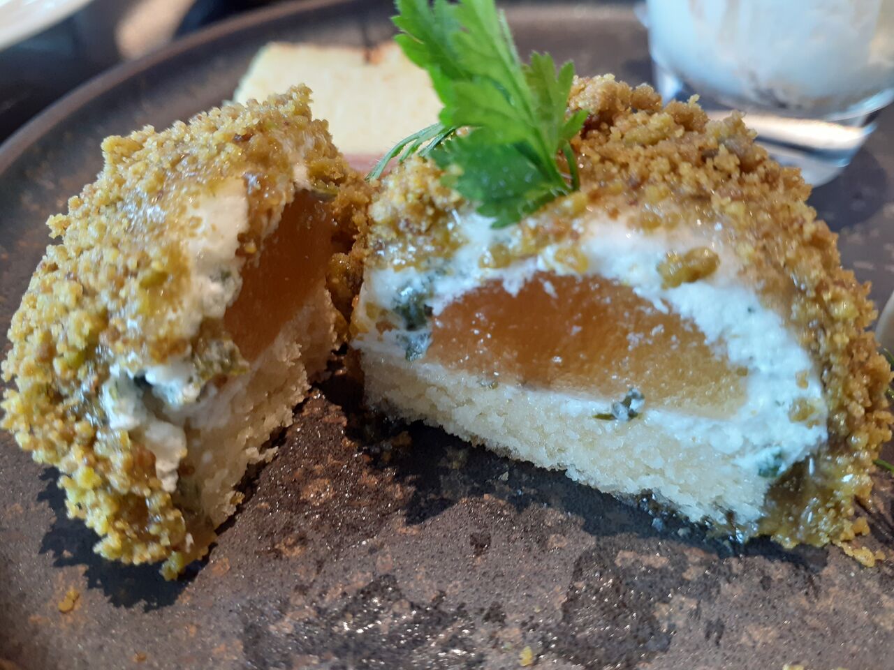 ピスタチオムースにフィアンティーヌとアプリコットの酸味をプラスした、ナッツのムース。
