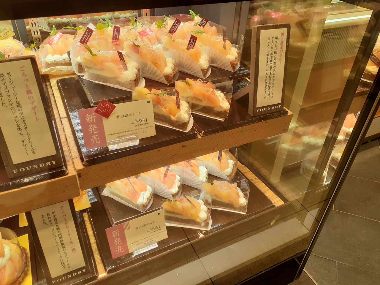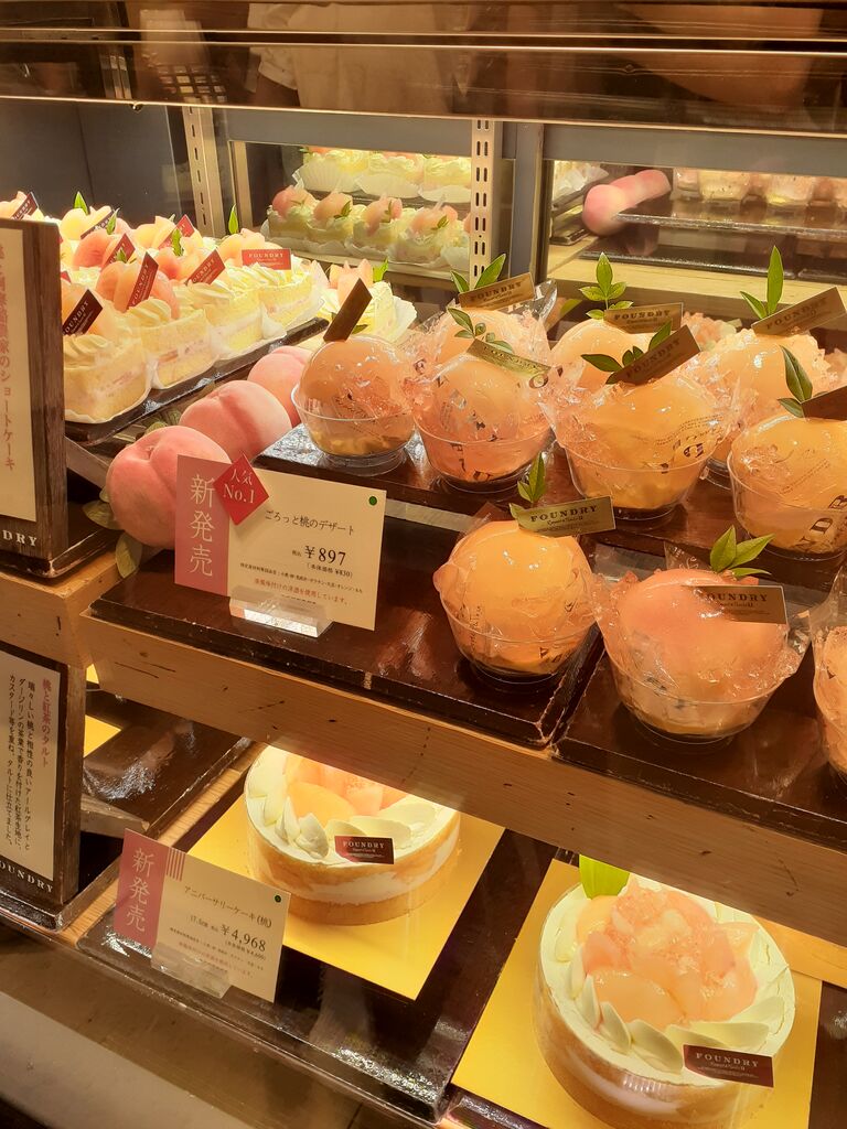桃のラインナップは、カットケーキが3種類、ホールケーキが2種類です🥭