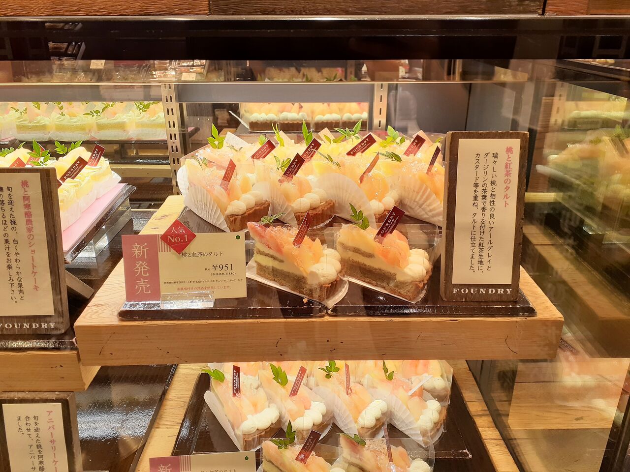 桃のラインナップは、カットケーキが3種類、ホールケーキが2種類です🥭