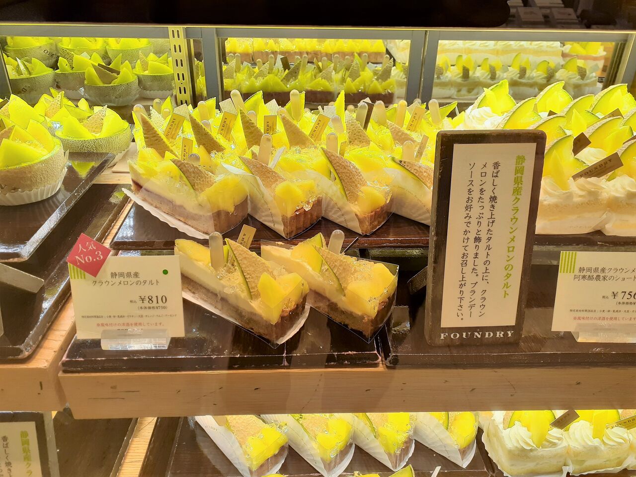 静岡県産のクラウンメロンを使ったケーキは、カットケーキ3種類、ホールケーキ2種類のラインナップです。